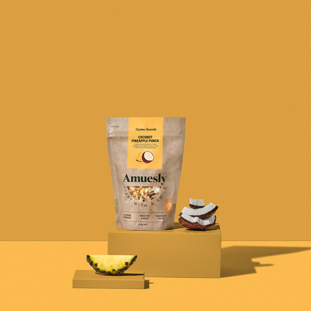 A delicious combination of dried pineapple and toasted coconut chips with our premium granola base.